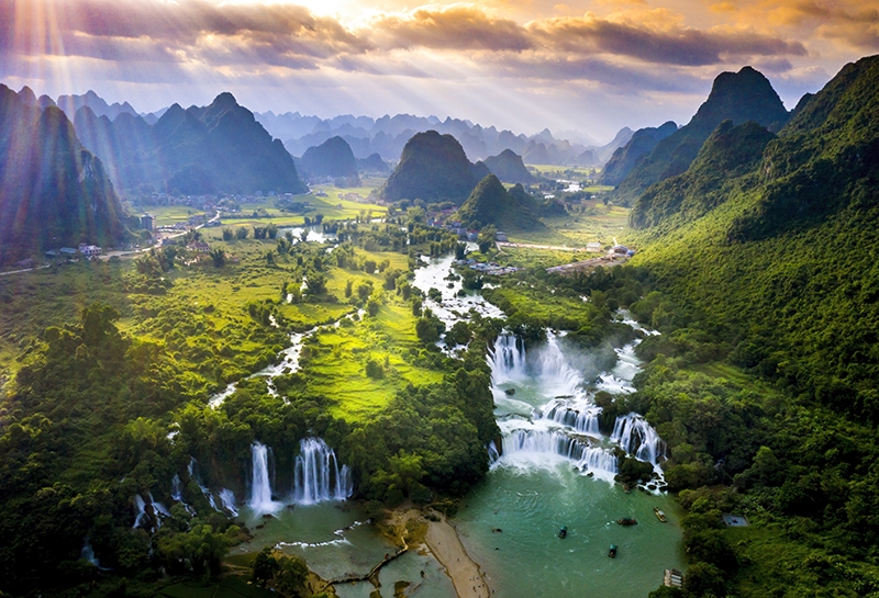 When mentioning Cao Bằng, visitors cannot miss Bản Giốc Waterfall – one of the most beautiful waterfalls in Vietnam, located on the Vietnam – China border. With its majestic natural scenery, crystal-clear water, and cool climate all year round, this is an ideal destination for those who love exploring and enjoying pristine beauty.